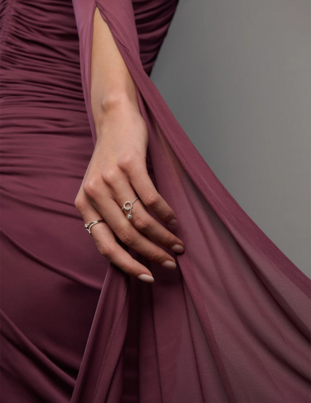 Un tocco di luce pura: l’anello in oro bianco 18 carati con sfera charm con diamante unisce raffinatezza e design moderno. La catena esprime forza e connessione, mentre il diamante centrale illumina ogni gesto con eleganza naturale. Un gioiello che racconta stile, femminilità e contemporaneità.