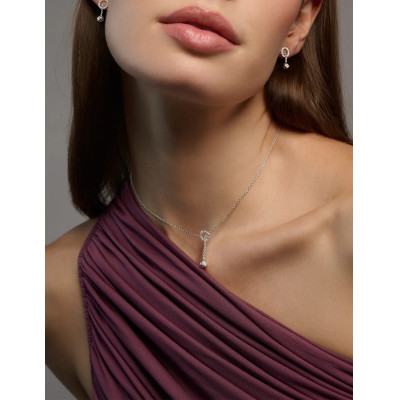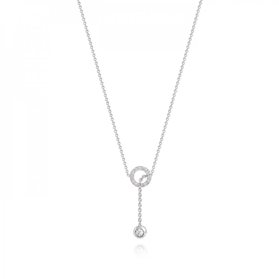 Eleganza fluida e raffinata: la collana in oro bianco 18 carati con cerchio di diamanti e sfera charm con diamante incarna equilibrio e luce. La catena passante crea un design dinamico, perfetto per chi ama la modernità senza tempo.